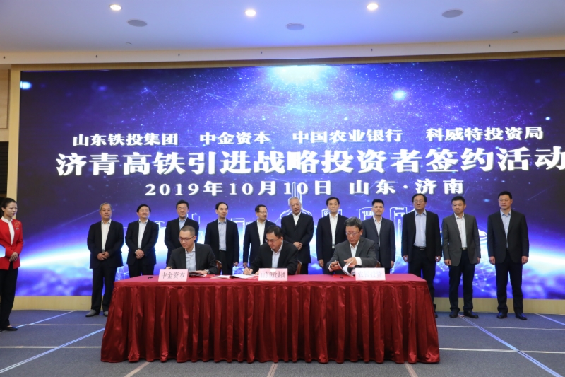 10月10日,濟青高鐵引進戰(zhàn)略投資者簽約活動在山東大廈舉行,山東省凌文副省長,發(fā)改委、國資委、交通廳、山東鐵投集團等主要負責人,中金資本、科威特投資局、農(nóng)銀投資等機構投資者主要負責人出席會議。濟青高鐵作為國家鐵路投融資體制改革后第一條以地方為主投資建設的高速鐵路,本次引戰(zhàn)的成功是我省落實中央和山東省政府部署、探索中國高速鐵路項目投融資新模式、推動“雙招雙引”的重要舉措,標志著我省在加快推進基礎設施建設投融資改革方面又一次走在了全國前列。