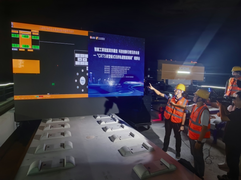在濟濱高鐵站前5標夜間施工現(xiàn)場,專家們共同觀摩CRTSⅢ型板式無砟軌道智能精調(diào)機器人、自密實混凝土灌注機器人無砟軌道施工作業(yè),具體了解無砟軌道智能工裝設(shè)備工藝流程、質(zhì)量控制要點、安全防控措施等情況并就無砟軌道施工及智能工裝設(shè)備應(yīng)用進行了深入探討。