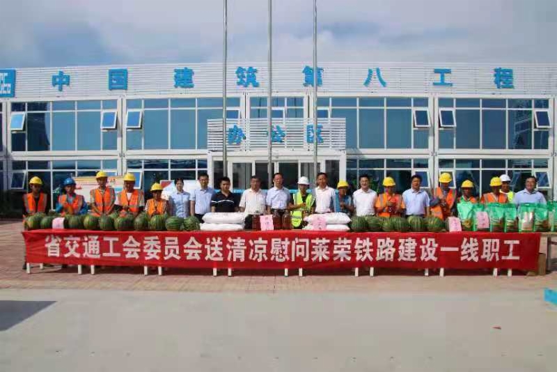 7月22日正值大暑節(jié)氣,省交通工會(huì)副主席王迎軍一行,赴萊榮高鐵建設(shè)一線開展“2021年學(xué)黨史、辦實(shí)事、送清涼”活動(dòng),為高鐵建設(shè)一線職工送去防暑降溫用品。集團(tuán)工會(huì)主席張慶星陪同。