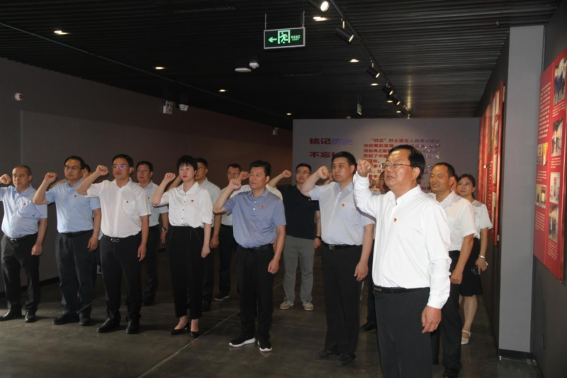 在講解員的指引下,大家深入學(xué)習(xí)了山東早期黨組織發(fā)展與斗爭(zhēng)史、“四五”烈士生平和革命事跡。在一張張斑駁的老照片和一件件飽經(jīng)風(fēng)霜的烈士遺物面前,大家仿佛回到了那個(gè)槍林彈雨、血雨腥風(fēng)的崢嶸歲月,被“四五”烈士追求真理、獻(xiàn)身革命、堅(jiān)守信仰、不屈不撓的革命精神深深感動(dòng)。全體人員面對(duì)黨旗,重溫入黨誓詞,表達(dá)了對(duì)黨的堅(jiān)定信念和真摯情感。