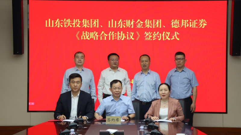4月29日,山東鐵投集團(tuán)與山東財金集團(tuán)、德邦證券在濟(jì)南簽署戰(zhàn)略合作協(xié)議。山東財金集團(tuán)黨委書記、董事長梁雷,黨委副書記、董事、總經(jīng)理崔朋朋,德邦證券總裁,德邦基金、德邦資管董事長左暢,山東鐵投集團(tuán)黨委書記、董事長王衛(wèi)中,黨委委員、副總經(jīng)理趙春雷出席簽約活動。