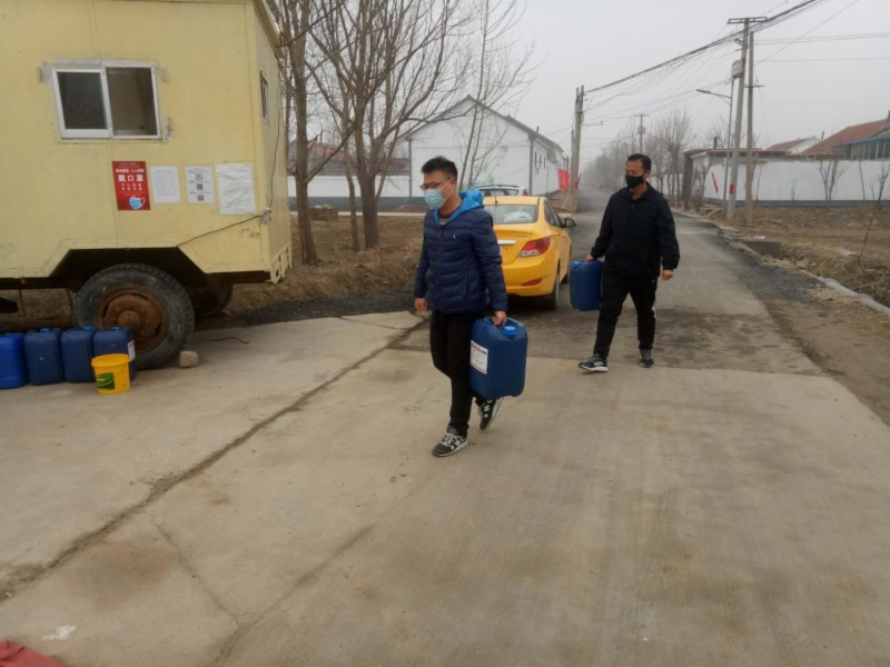 “抗擊疫情物資保障是關(guān)鍵?!睆埫舻綅徍?,發(fā)現(xiàn)幫扶村口罩、消毒液等防護(hù)物資緊缺,有些值班人員一次性口罩反復(fù)使用。于是張敏與隊(duì)員前往東營東城、墾利以及廣饒等多個(gè)藥店購買,但均無現(xiàn)貨。最后,終于聯(lián)系到魯西南一家供應(yīng)商購買3M口罩500只,通過順豐快遞發(fā)往永安鎮(zhèn),及時(shí)送到幫扶村村民手中。在前期協(xié)調(diào)的外地醫(yī)用酒精無法及時(shí)到位的情況下,又積極聯(lián)系東營當(dāng)?shù)匾患宜幬锲髽I(yè)免費(fèi)提供200斤醫(yī)用酒精,發(fā)放到幫扶村進(jìn)行消毒。