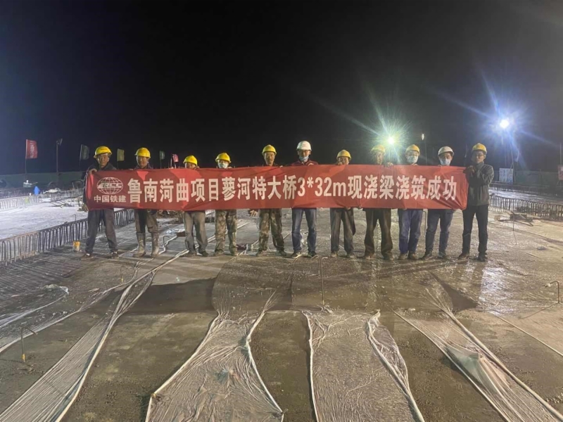 5月13日凌晨4點,經(jīng)過45小時連續(xù)奮戰(zhàn),魯南高鐵蓼河特大橋82#-85#墩3*32.7m道岔現(xiàn)澆梁順利完成澆筑。