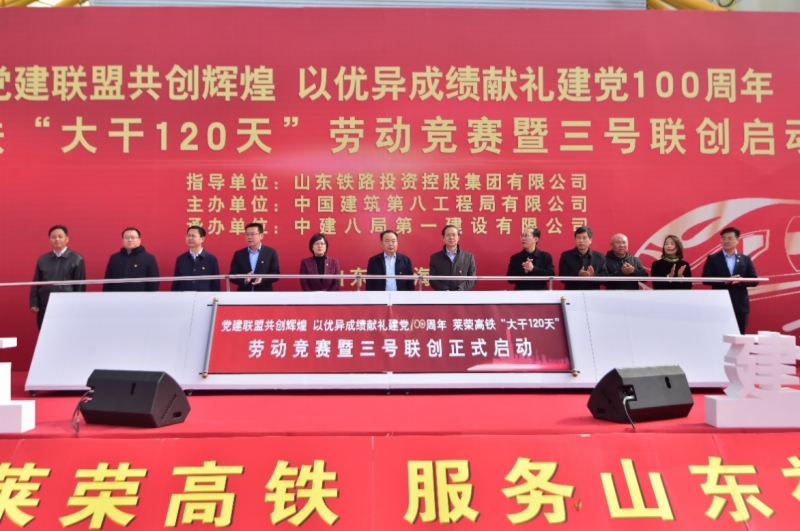 近日,濟(jì)青高鐵公司、威海市發(fā)改委、乳山市發(fā)改局、南海新區(qū)經(jīng)發(fā)局、文登區(qū)發(fā)改局,以及中建八局一公司萊榮高鐵項(xiàng)目部,在萊榮高鐵開展“黨建聯(lián)建共創(chuàng)輝煌 以優(yōu)異成績(jī)獻(xiàn)禮建黨100周年”勞動(dòng)競(jìng)賽暨“三號(hào)”(黨員先鋒號(hào)、工人先鋒號(hào)、青年文明號(hào))聯(lián)創(chuàng)、黨建聯(lián)盟啟動(dòng)儀式,結(jié)合日前開展的“大干120天,喜迎建黨100周年”勞動(dòng)競(jìng)賽,萊榮高鐵建設(shè)按下“加速”鍵。