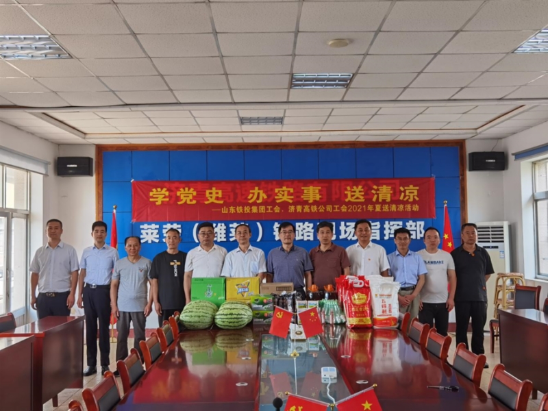 為貫徹落實(shí)各級(jí)工會(huì)關(guān)于開展好“送清涼”活動(dòng)的有關(guān)要求,切實(shí)維護(hù)好職工安全健康權(quán)益,體現(xiàn)集團(tuán)和公司工會(huì)對(duì)廣大職工的關(guān)愛,同時(shí)推動(dòng)黨史學(xué)習(xí)教育深入開展,學(xué)黨史、辦實(shí)事,7月14日-16日,濟(jì)青高鐵公司工會(huì)聯(lián)合集團(tuán)工會(huì),赴萊榮、濰煙高鐵建設(shè)一線開展“學(xué)黨史、辦實(shí)事、送清涼”活動(dòng)。集團(tuán)公司副總經(jīng)理竇玉碩、工會(huì)主席張慶星,濟(jì)青公司黨委副書記、工會(huì)主席張富兵帶隊(duì)參加活動(dòng)。