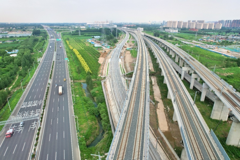 黃東聯(lián)絡(luò)線由膠濟(jì)線黃臺(tái)站東咽喉引出,接入濟(jì)青高鐵濟(jì)南東站,線路全長(zhǎng)10.5公里。全線共設(shè)黃臺(tái)站、水坡村線路所、濟(jì)南東站,設(shè)計(jì)時(shí)速120千米/小時(shí)。該段線路聯(lián)調(diào)聯(lián)試工作于8月11日正式啟動(dòng),總計(jì)開(kāi)行試驗(yàn)列車559列,走行里程4759公里。期間利用“3+2”檢測(cè)列車開(kāi)展動(dòng)態(tài)檢測(cè)與逐級(jí)提速試驗(yàn),對(duì)軌道、接觸網(wǎng)、路基狀態(tài)進(jìn)行全面檢測(cè);利用綜合檢測(cè)列車完成逐級(jí)提速試驗(yàn)以及全線拉通試驗(yàn),對(duì)接觸網(wǎng)幾何參數(shù)、軌道幾何狀態(tài)及通信信號(hào)等系統(tǒng)項(xiàng)目開(kāi)展全面檢測(cè)試驗(yàn);利用動(dòng)車組完成信號(hào)系統(tǒng)試驗(yàn)??傮w評(píng)價(jià)和驗(yàn)證了牽引供電、接觸網(wǎng)、通信及信號(hào)等系統(tǒng)性能,實(shí)現(xiàn)對(duì)高鐵各子系統(tǒng)和整體系統(tǒng)的進(jìn)一步調(diào)試、優(yōu)化。