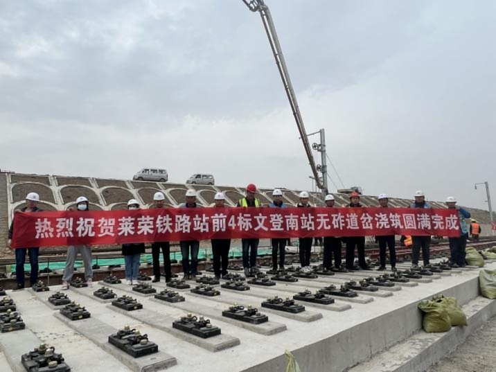 4月13日,萊榮鐵路文登南站最后一組無(wú)砟道岔順利澆筑完成,標(biāo)志著萊榮高鐵公司投資建設(shè)的萊榮鐵路全線42組無(wú)砟道岔全部施工完成,萊榮鐵路距離開通目標(biāo)更近了一步。