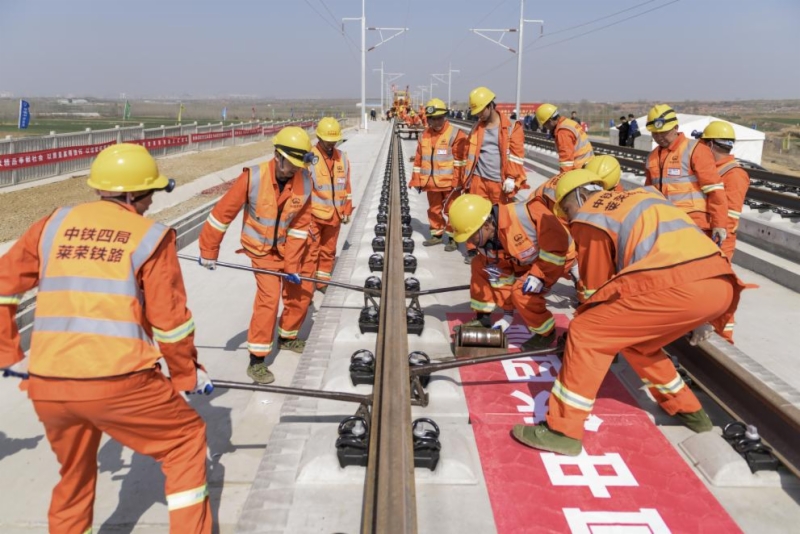 萊榮高鐵正線長(zhǎng)度 192.814km,其中鋪設(shè)無砟軌道地段 180.999km。自2022年3月下旬無砟軌道工程全面轉(zhuǎn)入線上施工以來,萊榮高鐵公司充分發(fā)揮黨建引領(lǐng)作用,精心組織,細(xì)化安排,充分優(yōu)化資源配置,全線高峰時(shí)段38個(gè)作業(yè)面同時(shí)施工,作業(yè)人員高達(dá)1500余人。各參建單位齊心協(xié)力克服了工作面多、作業(yè)班組多、施工組織難度大、不良天氣頻發(fā)和疫情防控等不利因素影響,僅用不足400天時(shí)間順利完成全線無砟軌道施工任務(wù)。目前萊榮高鐵鋪軌已完成近半,計(jì)劃6月初完成鋼軌放散鎖定,7月初開始聯(lián)調(diào)聯(lián)試,10月底具備開通運(yùn)營條件。