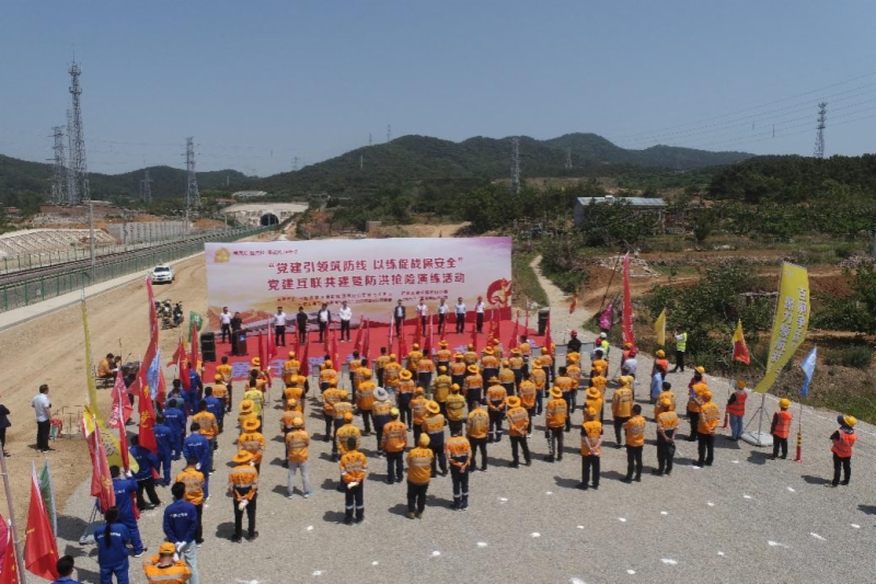 為貫徹落實(shí)主題教育“學(xué)思想、強(qiáng)黨性、重實(shí)踐、建新功”的總要求,深入堅(jiān)持黨建引領(lǐng),切實(shí)提升防汛應(yīng)急搶險(xiǎn)能力,傳承發(fā)揚(yáng)2022年臺風(fēng)“梅花”過境時(shí)形成的搶險(xiǎn)經(jīng)驗(yàn),有效應(yīng)對汛期突發(fā)災(zāi)害,保障在建濰煙高鐵和鄰近運(yùn)營鐵路線安全,5月23日,濟(jì)青高鐵公司聯(lián)合濟(jì)南局集團(tuán)青島工務(wù)段、站前6標(biāo)中鐵上海局、監(jiān)理7標(biāo)上海天佑在濰煙高鐵煙臺上行28號路基開展2023年防汛應(yīng)急演練。