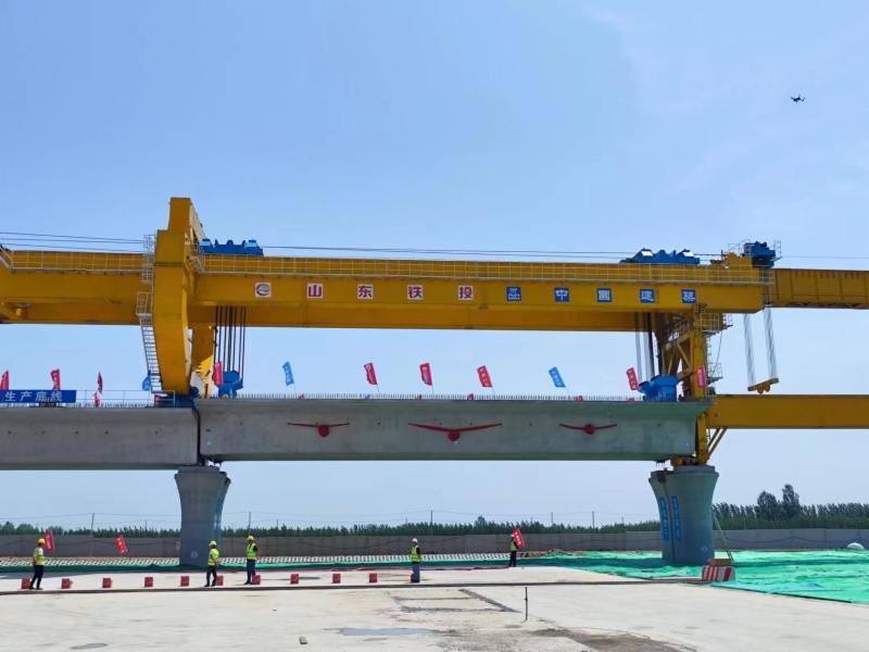 為確保首孔箱梁順利架設(shè),山東鐵投集團(tuán)濟(jì)濱高鐵公司與中建股份濟(jì)濱高鐵3標(biāo)項(xiàng)目部圍繞首榀箱梁制、運(yùn)、架施工任務(wù),提前規(guī)劃、倒排工期,緊抓進(jìn)場(chǎng)驗(yàn)收環(huán)節(jié),協(xié)調(diào)各方力量,保證物資供應(yīng),有力保障施工效率和制梁進(jìn)度。一個(gè)月內(nèi)完成架橋機(jī)和運(yùn)梁車組裝、測(cè)試工作,確保架橋機(jī)設(shè)備性能狀態(tài)。嚴(yán)控架梁施工方案,圍繞箱梁吊裝、運(yùn)輸、架設(shè)等關(guān)鍵工序,認(rèn)真做好技術(shù)、安全交底和安全培訓(xùn),確保架梁施工安全平穩(wěn)推進(jìn)。
