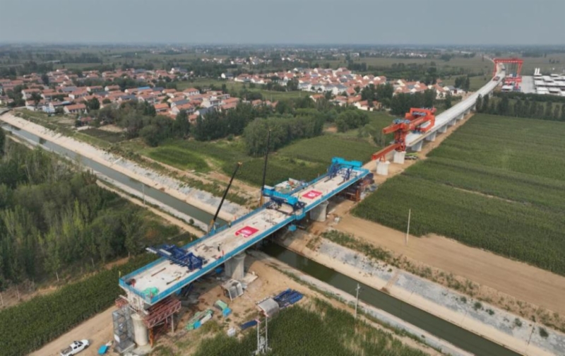 該連續(xù)梁位于濱州市濱城區(qū)楊柳雪鎮(zhèn),全長113.5米,采用(32+48+32)米連續(xù)梁結(jié)構(gòu)。為確保連續(xù)梁順利合龍,山東鐵投集團(tuán)濟(jì)濱高鐵公司和中鐵二十四局克服施工環(huán)境復(fù)雜、環(huán)保要求高等難題,精心研究編制專項(xiàng)施工方案,緊盯施工關(guān)鍵環(huán)節(jié),現(xiàn)場安排專人對(duì)合龍段模板安裝、鋼筋綁扎、混凝土澆筑等工序進(jìn)行檢查驗(yàn)收,強(qiáng)化現(xiàn)場安全技術(shù)保障,選定在凌晨氣溫低、溫差小的時(shí)間段進(jìn)行混凝土澆筑,保證各項(xiàng)控制指標(biāo)符合規(guī)范要求,確保橋梁合龍質(zhì)量。