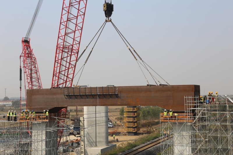 10月17日11時40分,隨著一聲“就位完畢”口令,濟(jì)濱高鐵商惠濱2號特大橋1724#墩上跨德大鐵路門式墩鋼蓋梁精準(zhǔn)吊裝就位,標(biāo)志著該標(biāo)段重難點(diǎn)控制性工程取得重大進(jìn)展,為項(xiàng)目后續(xù)架梁、鋪軌順利進(jìn)行提供堅(jiān)實(shí)保障。