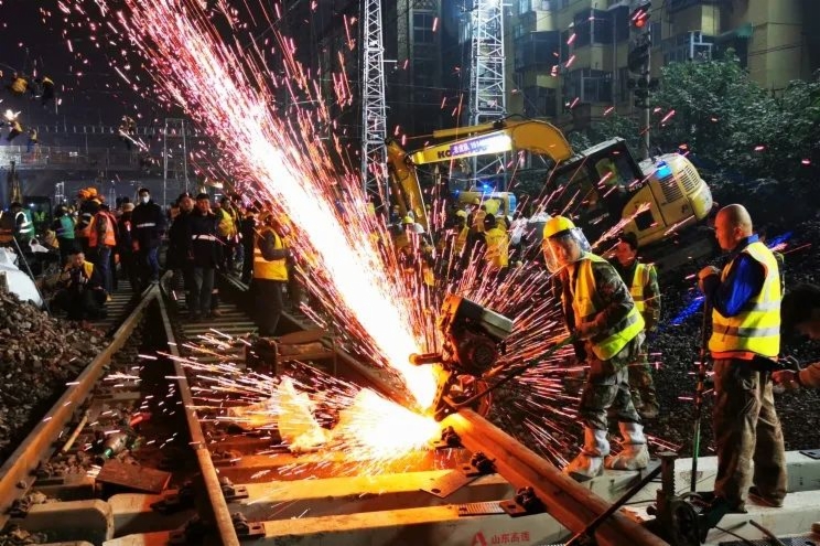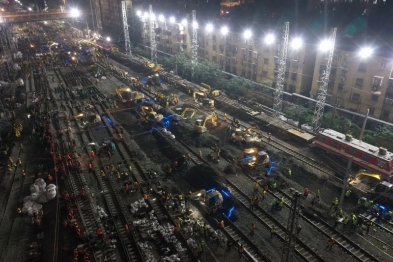 15日19時20分,隨著施工命令下達(dá),各專業(yè)施工人員迅速進入現(xiàn)場,道岔拆鋪、線路撥接、大機搗固、電務(wù)設(shè)備倒接等作業(yè)有序展開。工務(wù)、電務(wù)、電牽、車站等各專業(yè)提前細(xì)化施工組織方案,明確各階段施工重點,嚴(yán)格按照計劃組織施工,確保施工作業(yè)安全和運輸安全。